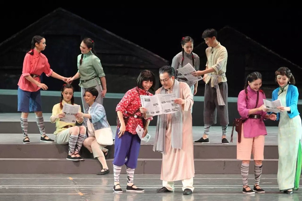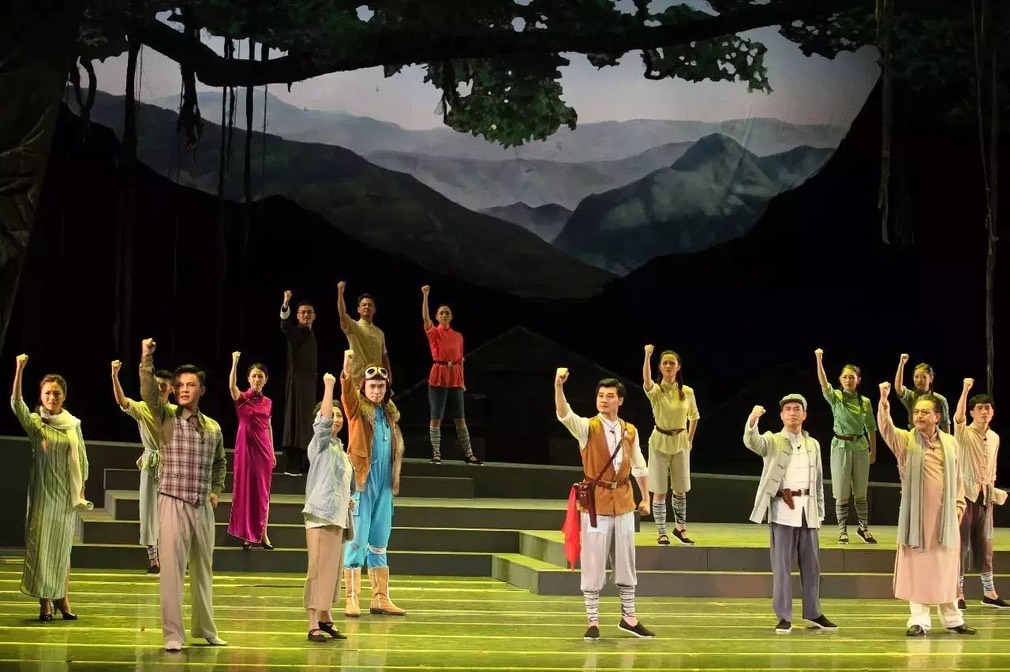 “唱起山歌念亲人哩,山歌一唱春水长呀。山歌有情山歌多哦,山歌引来呀百鸟和哩……”高亢而婉转的客家山歌,又带着观众在75年前的历史与如今对那段光阴的崇敬和怀念中,穿梭跳跃,感受风云前后的感动和震撼。